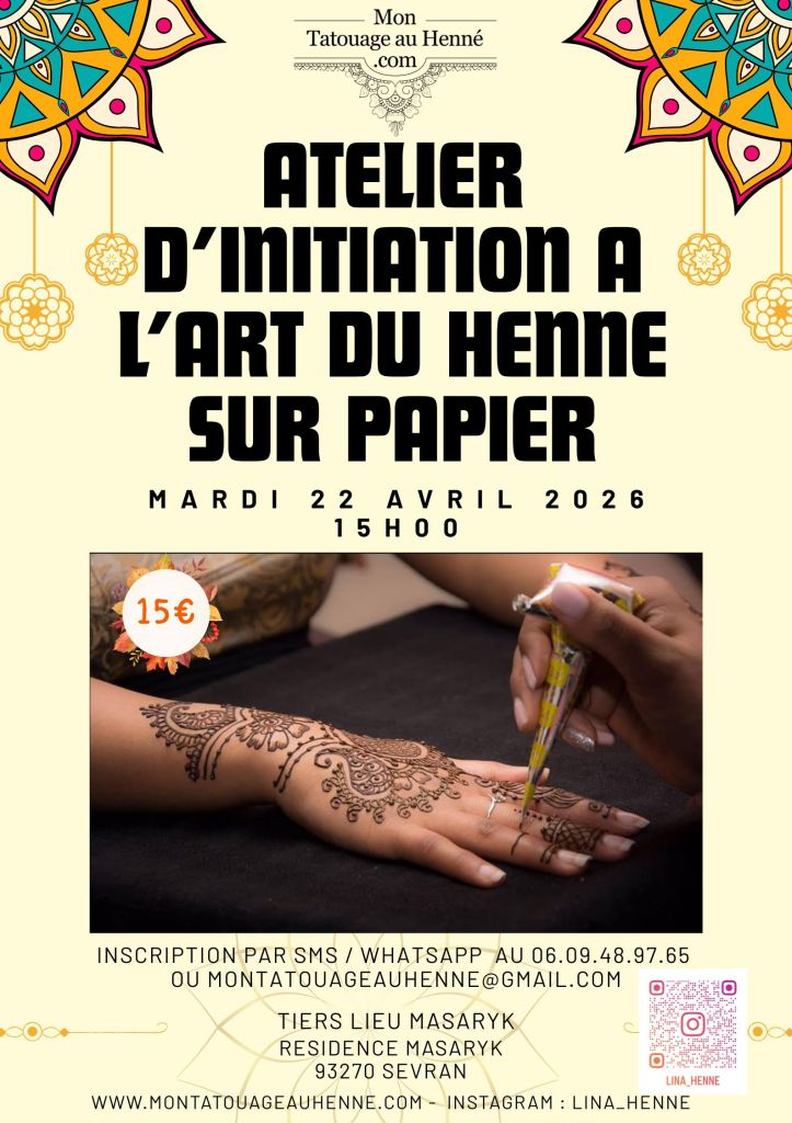 De plus, je proposerai également un atelier d’initiation à l’art du henné !