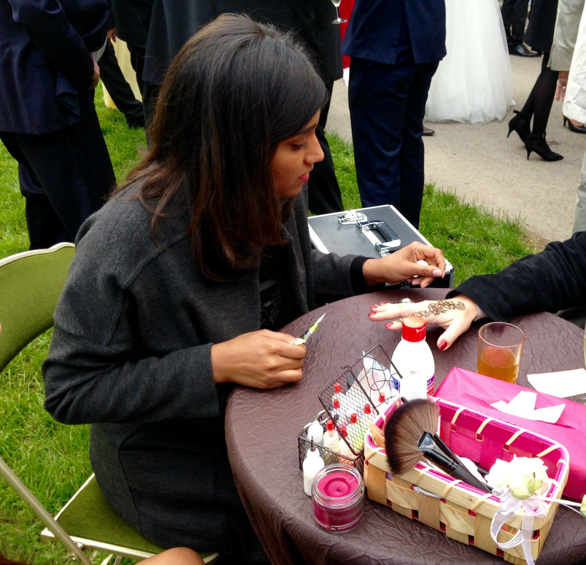 A travers son art, Lina partage et vit sa passion. Titulaire d’un certificat « Art Design Henna » obtenu à l’Ile Maurice en 2008, son pays d’origine, elle imagine sur les peaux de captivantes arabesques qui se déploient au fil de son inspiration.